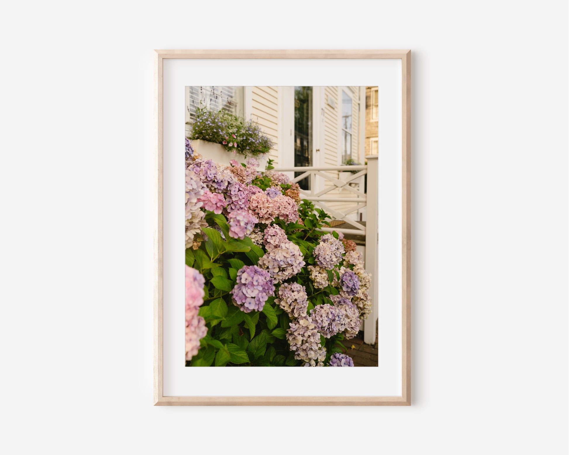 Bring a touch of timeless elegance into your home with this fine art hydrangea print. Captured in soft natural light, the delicate white blossoms feel airy and romantic — perfect for adding a coastal cottage charm to any room.
